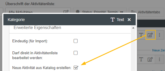 Wenn die Einstellung Neue Aktivität aus Katalog erstellen aktiviert ist, kann zusätzlich die Checkbox Nur Erstellung über Kataloge zulassen genutzt werden.
