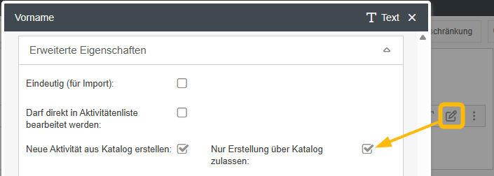 Ist diese Option aktiviert, wird das Erstellen von Aktivitäten und Feldgruppeneinträgen als Einzeleintrag unterbunden. Die Erstellung dieser Einträge ist für den Anwender dann ausschließlich durch die Auswahl von Katalogeinträgen möglich.