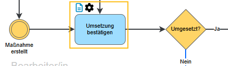 Eine so gekennzeichnete Aufgabe wird im Workflow-Ablauf nicht berücksichtigt. Solche Aufgaben, die für die Ablaufsteuerung nicht relevant sind, können zur besseren Visualisierung im Prozessmodell eingefügt werden, wenn das Modell z.B. zu Lehrzwecken genutzt wird.