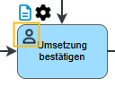 Mit der Option ist es möglich, die Aufgabe mit einem Fälligkeitstermin zu verbinden, ohne diesen im Modell extra zu modellieren. Er lässt sich genauso einstellen wie ein Timer und verhält sich ähnlich: Überfällige Aufgaben werden in der Aktivitätenliste hervorgehoben. Im Workflow-Modell werden angeforderte Aufgaben mit aktivem Timer so angezeigt: