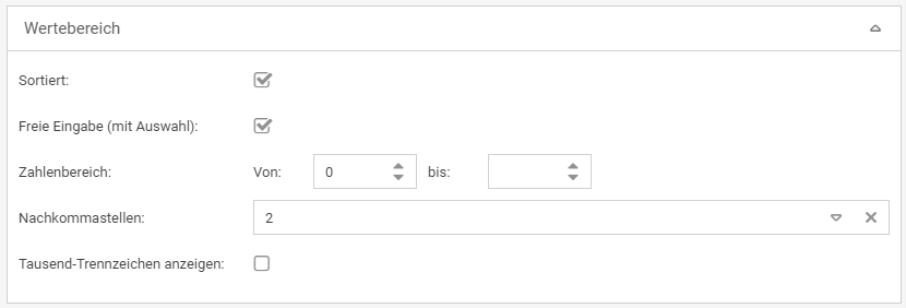 Außerdem ist es möglich die Anzahl der Nachkommastellen anzugeben und ein Tausend-Trennzeichen zu aktivieren.