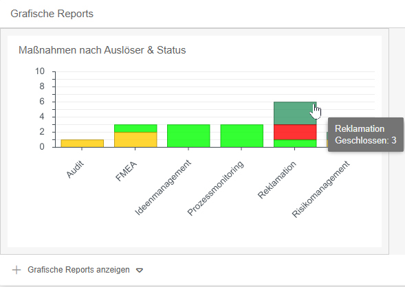 Um einen neuen Diagramm-Report in das Fenster mit aufzunehmen klicken Sie <+ Grafische Reports anzeigen>. Anschließend besteht eine Auswahl zwischen Nutzerspezifisch und Anwendungsweit.