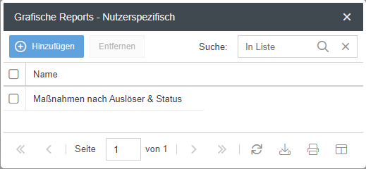 Über die Auswahl <Nutzerspezifisch> bekommen Sie zunächst eine Auflistung aller grafischen Reports, die momentan nur für Sie selbst in dem Fenster angezeigt werden.