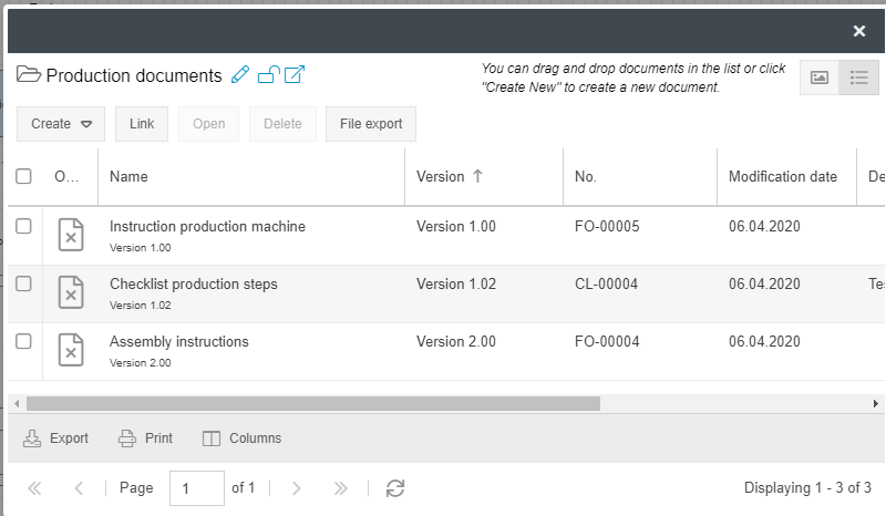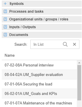 - In the details of a process beneath the process model, all linked documents are listed in the list 'Documents'