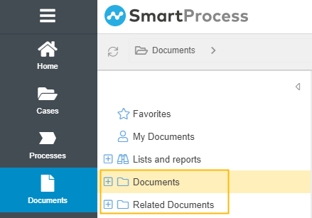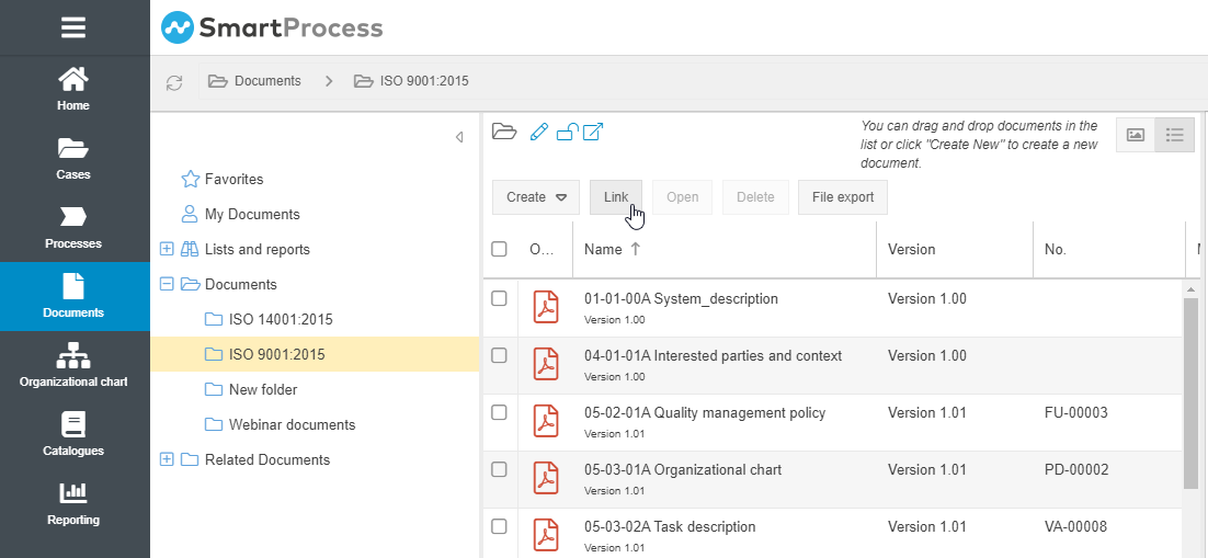 - Via <Link> you can access documents already created in SmartProcess and add them to the document folder.