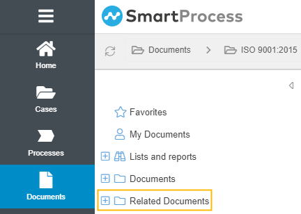 After the linking, it also appears in the folder 'Related documents', in which it is listed, based on the structure in the process explorer, which document was linked in which processes.