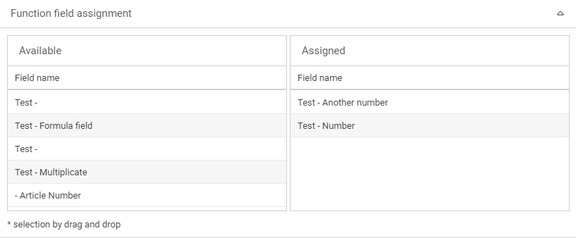 Multiply | A multiplication field calculates the product of several number fields, which must be assigned in the field properties. ![]() Only fields of the type "Number" are available for the assignment. ![]() |