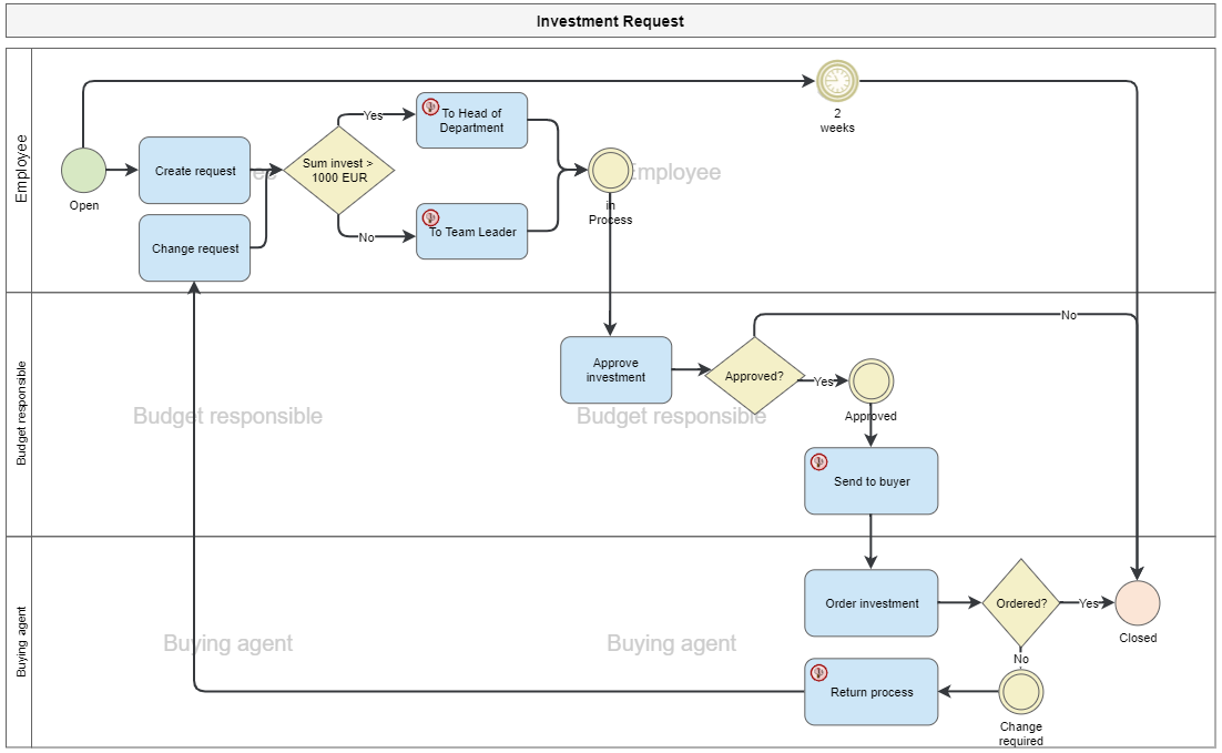 To provide the workflow objects of the process model with control options, the workflow engine must be opened and configured in the objects.
