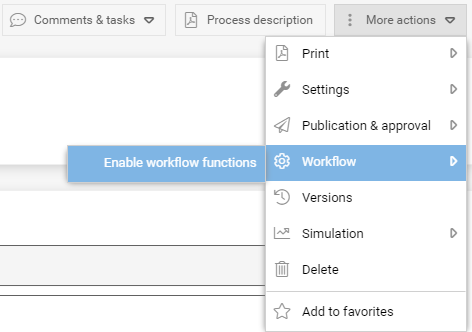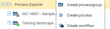 By right-clicking on the Process Explorer in the Processes menu or by right-clicking on a process group in the Process Explorer, you call up the context menu and can create a new workflow. The workflow functions are already activated for this object.