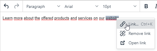 This option allows you to insert text as links, for example to link to specific folders and reports in SmartProcess, knowledge base entries or external websites.