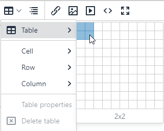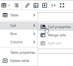 If you have selected one or more cells within a table, you can select additional options in the toolbar via the table icon -> Cell. These options allow you to modify only the selected cells of the table.
