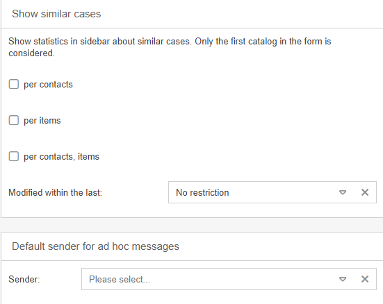 The display of similar cases can be activated in the case settings. If at least one of the checkboxes has been activated, the number of similar cases is displayed in the case window.