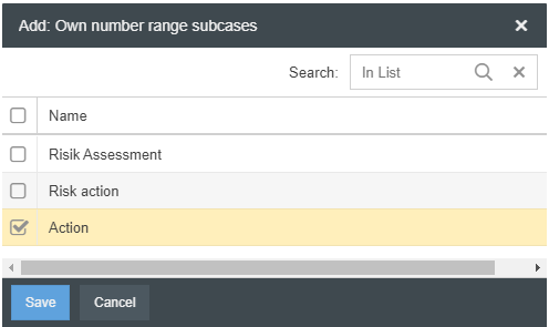 The <Own number range subcases> button can be used to select sub-tasks of the workflow whose case number is to follow its own number range.