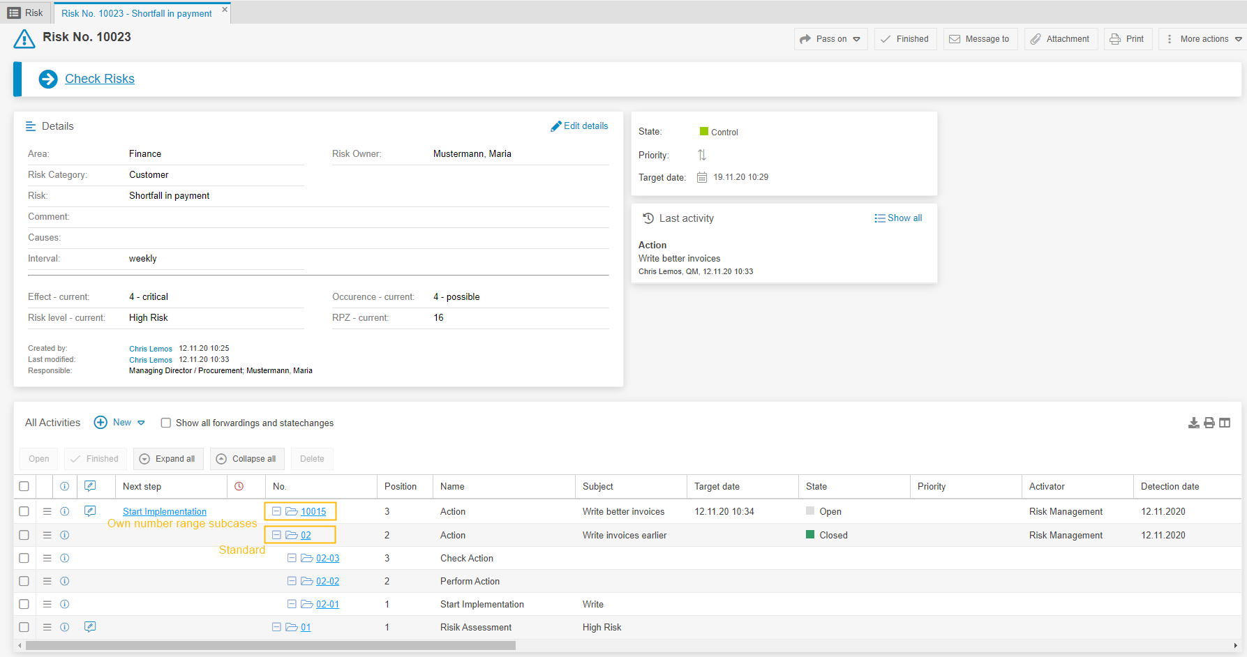 In the activity list of the case, this sub case type is now numbered with its own number range instead of a simple consecutive number.