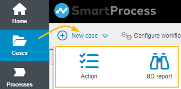 Display in "New case" (in cases menu) | A new case from this workflow can be started in the cases menu via the button <New case>: |
