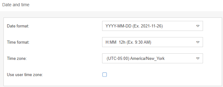 With these settings, the display format for dates and times can be customized, and furthermore, the time zone taken into account.
