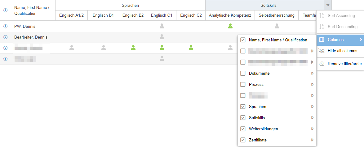 - When reporting with crosstabs, columns can now be grouped by a field. For example, the qualifications in the qualifications matrix can be grouped by category.