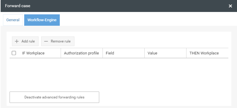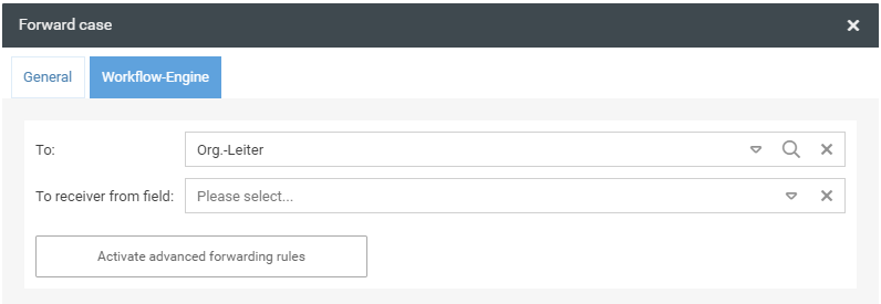 The object "Forward case" is required in every workflow if the operations resulting from the workflow are to be processed by several agents. It is only possible to forward a case to an agent or reque…