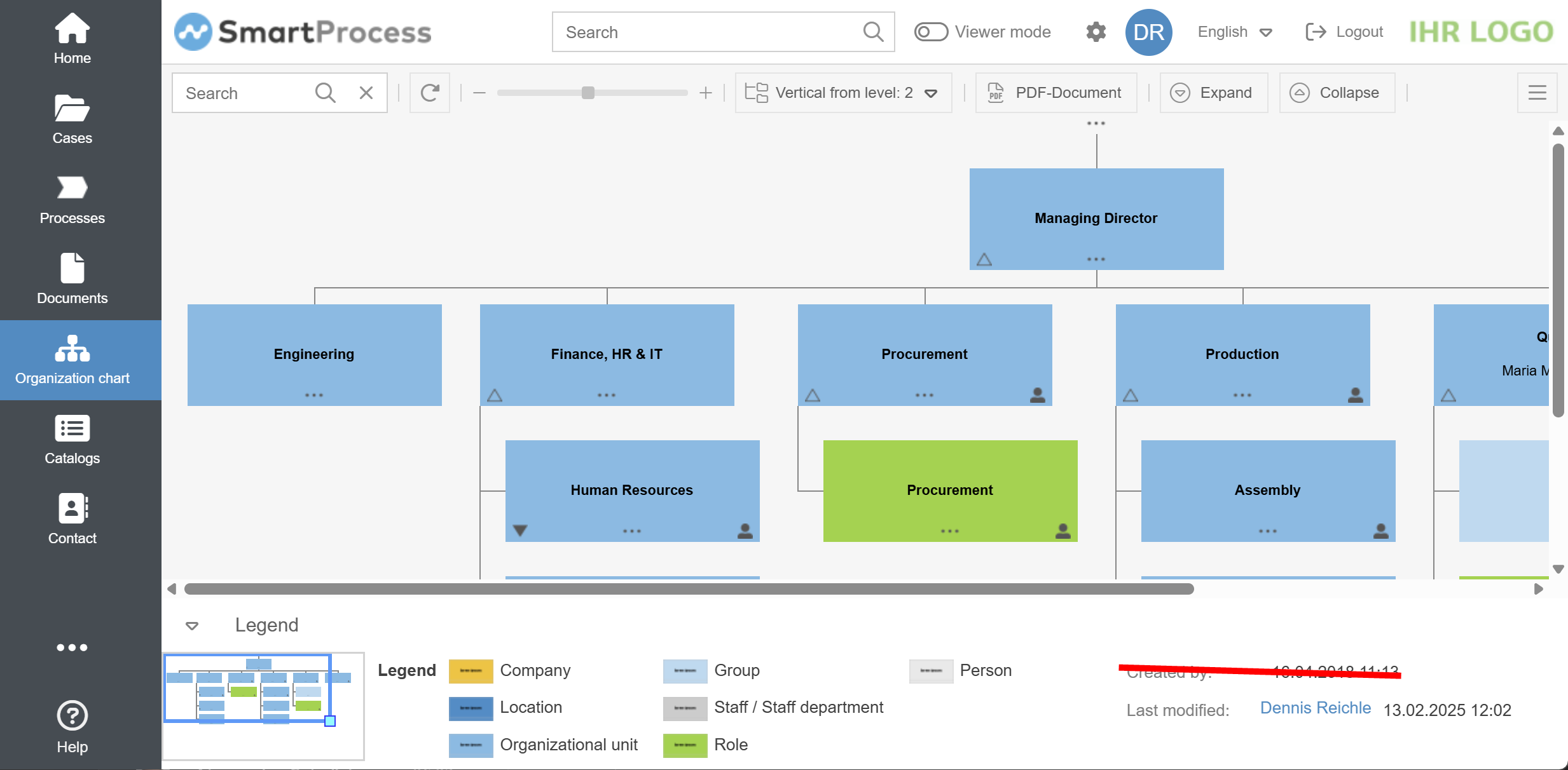 - The signature Created by has been removed from the legend of the organization chart as this information was not meaningful.