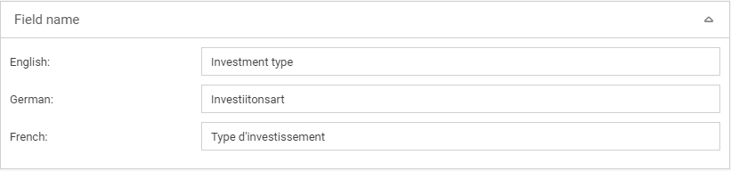 A field name must be specified for each field. If multiple languages are enabled in SmartProcess, a name must be specified for each language. Otherwise, the field is displayed in this display language without field names in the form.