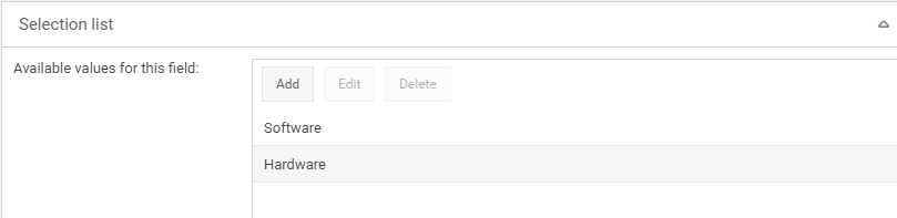 A selection list can be configured for some fields. The field is then displayed in the form as a drop-down list.