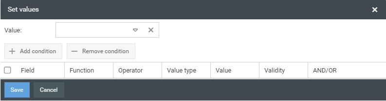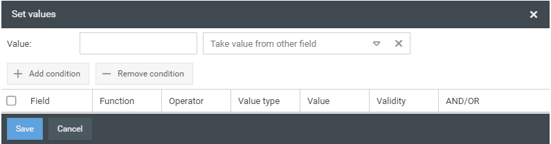 With the button <Edit> value assignments can be defined for a field. In this way, the field can be automatically filled with a value if the freely definable condition applies.