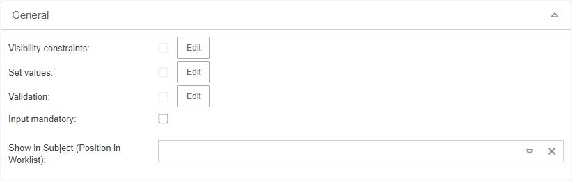 Checkbox | This function is only available for a simple field "Text / List without multiple selection". If this property is activated, all values of the selection list are deleted (if already entered) and the values Yes and No are entered. If a checkbox is activated, it has the value "Yes". If a checkbox is deactivated, it has the value "No". A checkbox always has "No" as default value. |