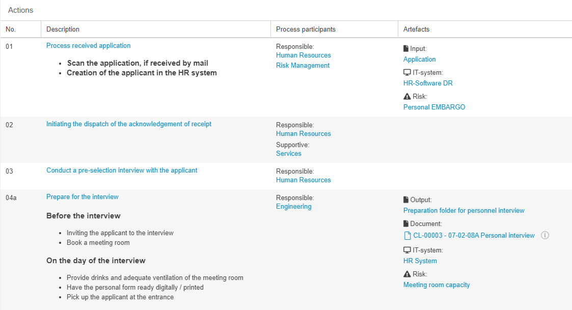 In the list Actions beneath the process model, all tasks and sub-processes that were modeled in the process model are listed. If the tasks have been numbered , the entries are sorted according to thi…
