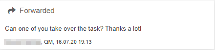 If the case has been assigned to another user or an Org. Unit via the main menu item Redirect to and a comment has been entered for the forwarding, this is displayed in a separate box.