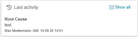 The "Last activity" window displays the last activity performed. You can enable and disable the display of this window in the Form Designer.