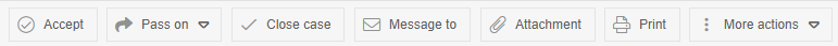 ![]() ![]() | The button <Accept> is only displayed in a case if the case is not directly assigned to a user, but only to an organizational chart object to which the user has been assigned. With this button the user can accept the unassigned case, so that it is directly assigned to the user. If a case has been accepted, the button <Reject> appears, which can be used to return the case to the org. chart object. The direct assignment to the user is thereby removed. |