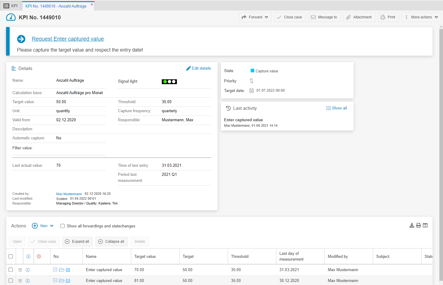 The case window displays the details and activities of the case and opens as a tab. In addition to the name of the case type and the unique case number, the main menu of the case is displayed on the…