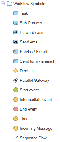 The following workflow objects, which are grouped together in a separate folder in the Process Designer, are required to configure a workflow: