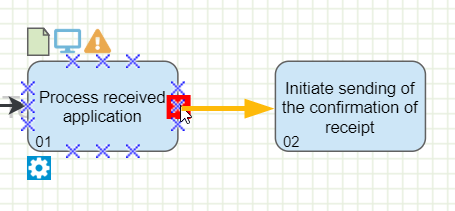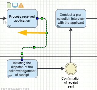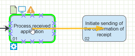 ![]() Sequence Flow | The sequence flow is used to display the sequence of the process from the start event, through the various tasks to be completed, to the End event. It usually links tasks with subsequent tasks, events and sub-processes. |