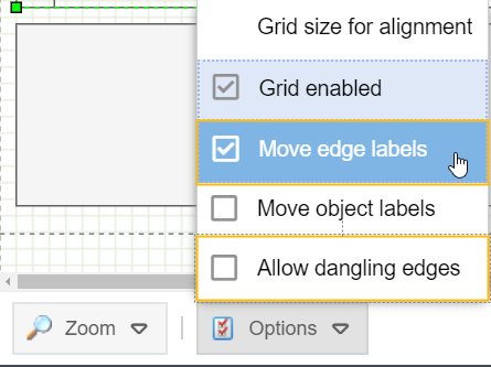 If the 'Move edge labels' setting is activated in the options in the footer of the Process Designer, the label can be moved to any position in the process model by dragging and dropping the yellow square on the connector label.