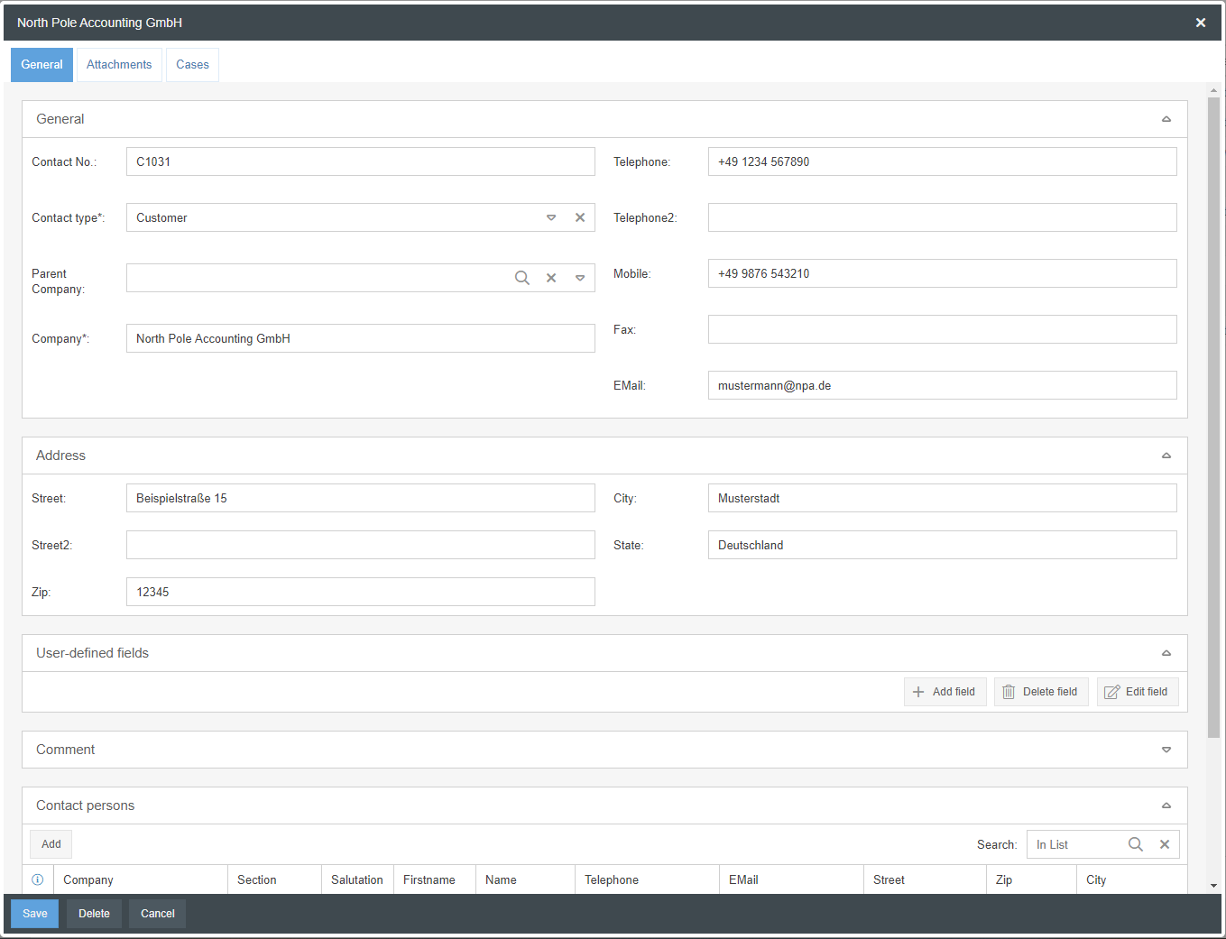 Similarly, the data concerning telephone number, e-mail and address will initially be automatically transferred to the contact person if the fields have been filled in at the company contact. However, this data can be individualized for each contact person if required.