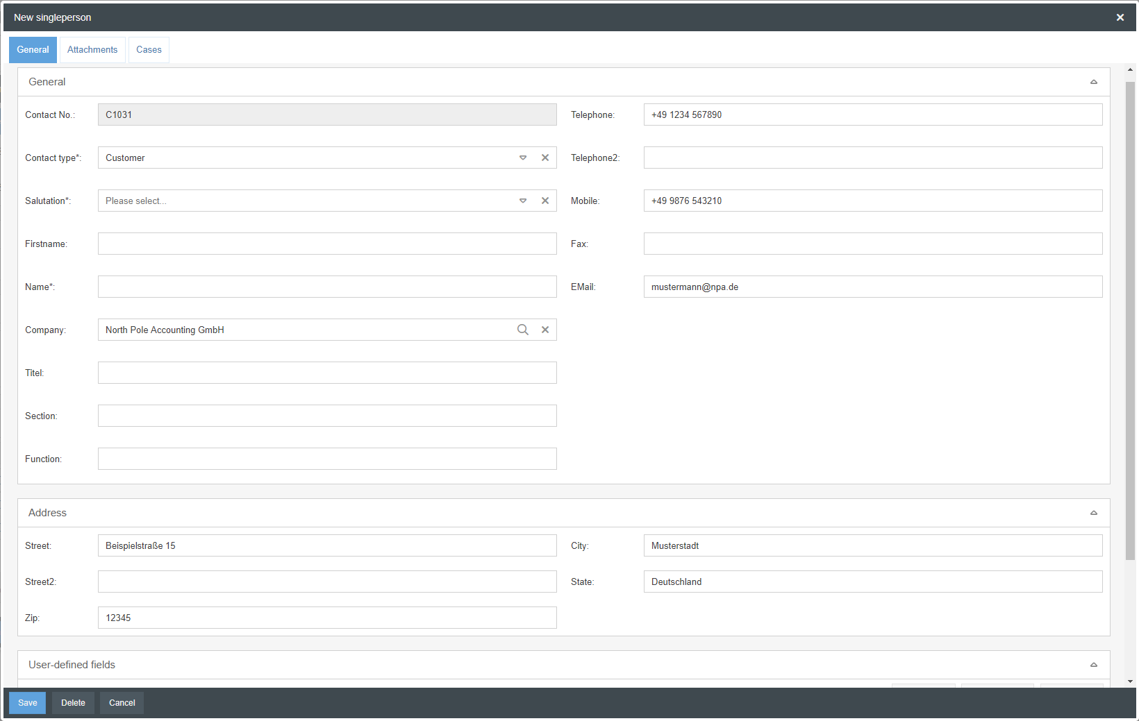 In addition to the contact data, personal information such as the function within the company or assignment to a department can also be recorded. Additional user-defined fields can also be created for persons if required.