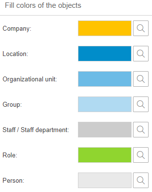 Furthermore, you can set whether the roles and groups should always be hidden or displayed when calling up the organization chart.