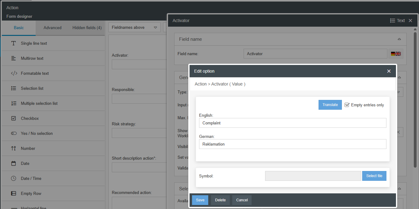 - Expansion of automatic translation: If the DeepL connection is set up, additional elements can now be translated in workflows, e.g., intermediate events, field names in forms, and selection options in selection fields.