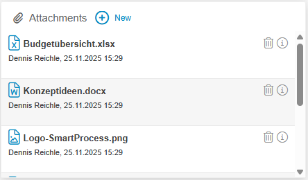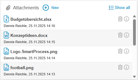 - In the Attachments window of a case, the added files are now displayed more compactly, so that up to 4 attachments are visible at a glance.