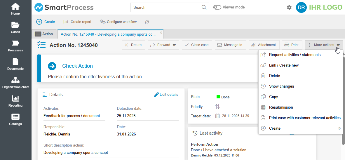 The REST API function was already expanded in the previous version 25.3 so that the interface call can also retrieve case data from SmartProcess and create and edit them.