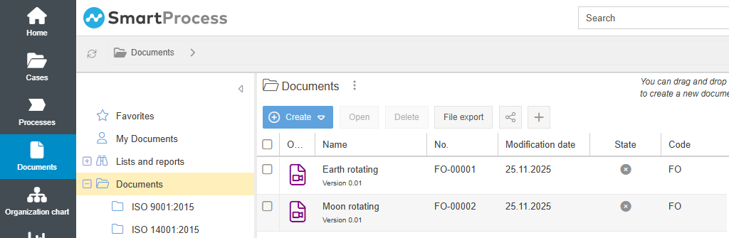- If a video in file formats such as mp4, mov, or avi is used as an attachment in SmartProcess, it is now represented in lists with its own icon (e.g., in the Documents menu or as an attachment to a case).
