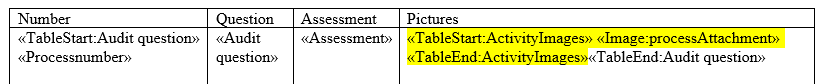 Within TableStart and TableEnd, the basic fields can be accessed. Task tables can also be accessed (if the corresponding task type is included in the activities), as well as the activities table (see above).