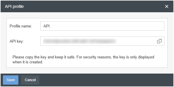 Click <+ New entry> to create a new API profile and generate an API key for this profile. You can give the profile any name you like in the 'Profile name' field.
