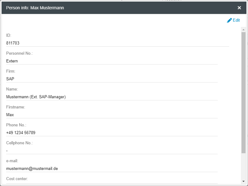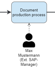 Person![]() | The Person object can be used in a process model to enter internal or external contact persons for specific areas or products with their contact data. After the object from the symbol area has been stored in the process model, the name of the person can be entered. ![]() Since the object person is reusable and can be evaluated in the reporting menue, the magnifying glass can be used to access persons already created in other processes. Das Personen-Objekt kann mit einer Aufgabe per Assoziations-Link verbunden werden. ![]() With a click on the person object, further contact data for the person is visible to the user. ![]() |