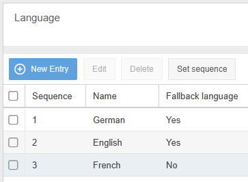 The fallback language is used to control whether content fields that have not been translated are displayed empty when called up or whether the specified fallback language is used instead. Several fallback languages can be defined so that they can replace each other.