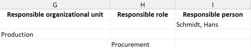 Responsible | In the Responsible field of a document an organizational unit, a role or a user can be selected. Regarding the import, 3 different columns are available for this purpose: