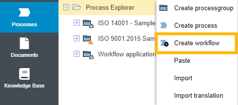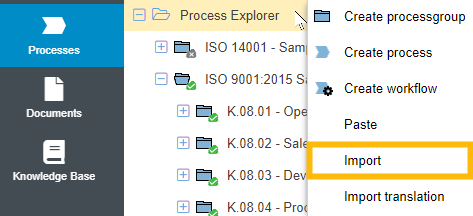 Creation of process groups and processes on the first level | If this option is enabled, users are allowed to create new process groups and processes on the first level of the Process Explorer. ![]() |