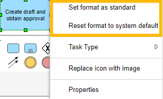 Set the standard format of process model symbols | If this option is enabled, the users are allowed to change the default format of modeling objects in the Process designer for the entire application and also to reset the standard format back to the system default. ![]() |