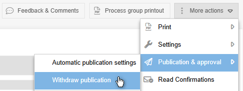 Withdraw and delete withdrawn processes | If this option is enabled, users can withdraw published processes, i.e. undo a publication: ![]() The deletion of withdrawn processes is also permitted. |